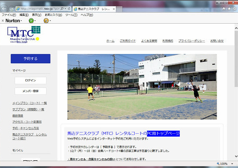 『レンタルコート専用ポータルサイト』では、「PC・スマホ」用に表示された見やすい画面から、レンタルコートのインターネット予約(24時間受付)が簡単・便利です。